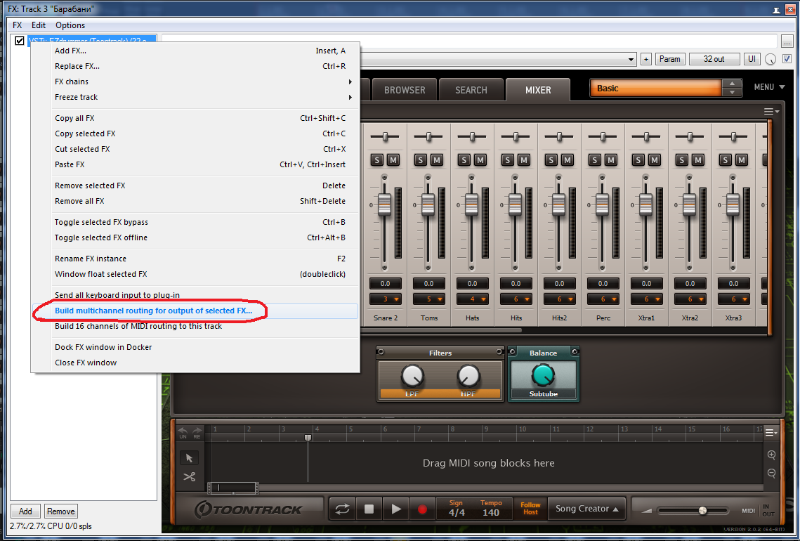 @PianoIst, Настройки Ez - я так понимаю ето микшер... ,,Окошко роутинга трека хэта,, - где такая информация находиться? Построил мультитрек так как на фото ,,1,,