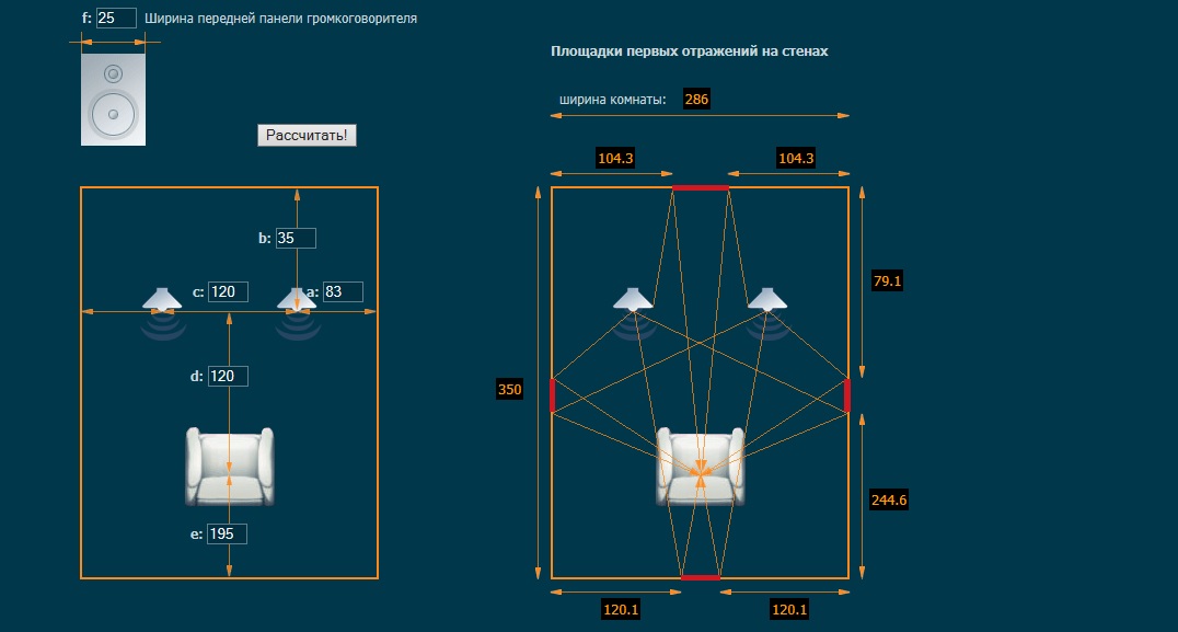 Так же я увидел калькулятор, расположение акустики по золотому сечению Фибоначчи (вроде так). Но там, как я понял можно только вдоль длинной стены расположить. Подскажите, правильно ли я задумал схему, или же что то упустил? И нужно ли пересмотреть схему и использовать это золотое сечение?