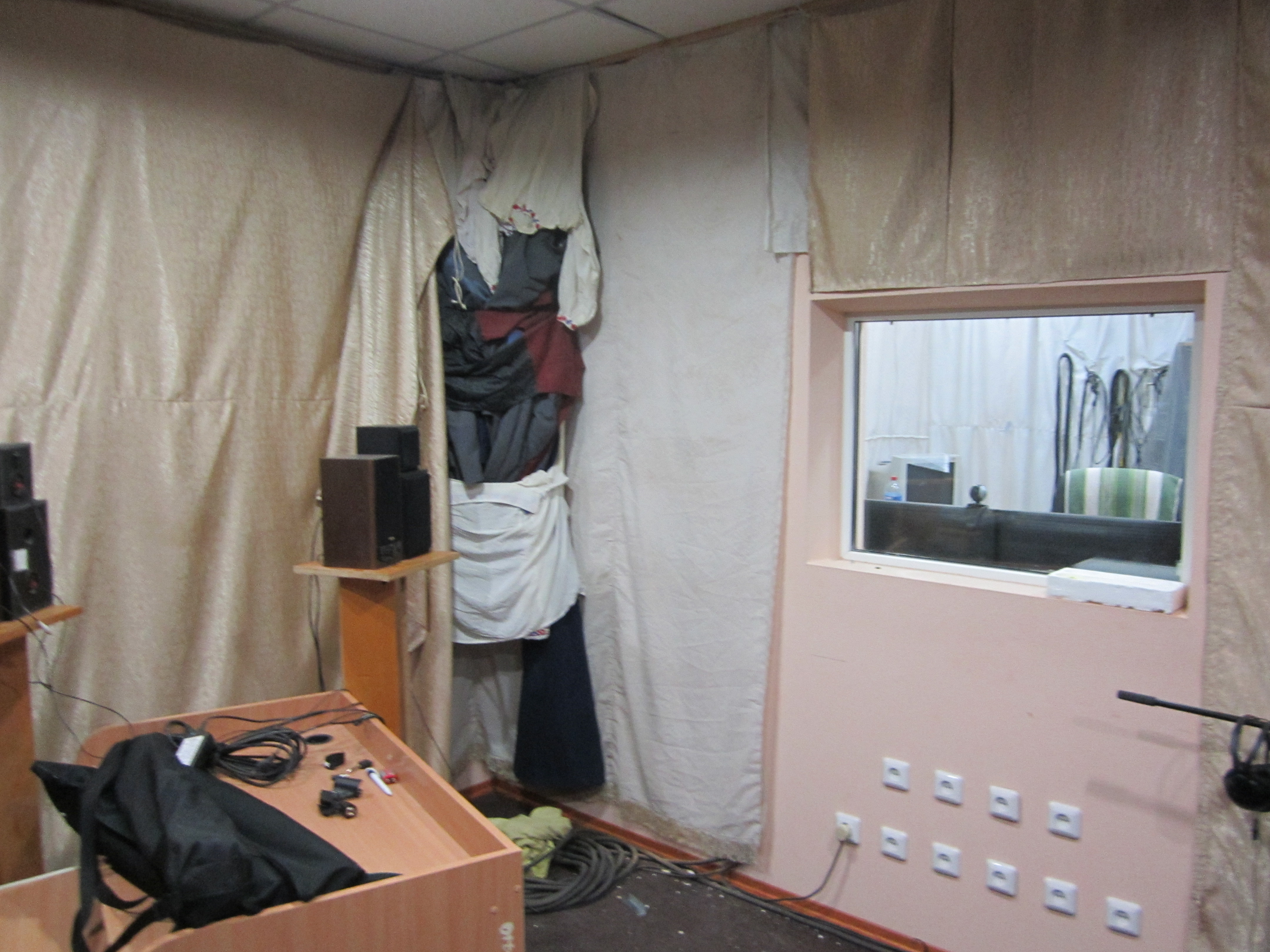 Расставил мониторы 110 от стен боковых каждая колонка, 74 от стены. Высота 120 как и расстояние между колонками и слушателем. Вроде как намудрил правильный треугольник по расстановке. В этом варианте окно находится сзади.