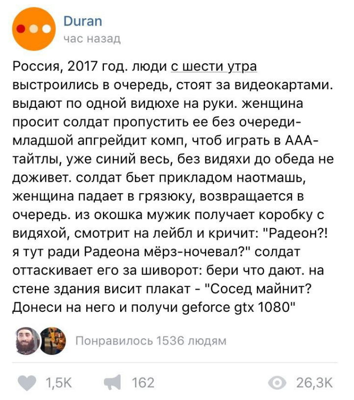 Каждый псих несущийся в магаз за 10 видеокартами в кредит - приближает конец )