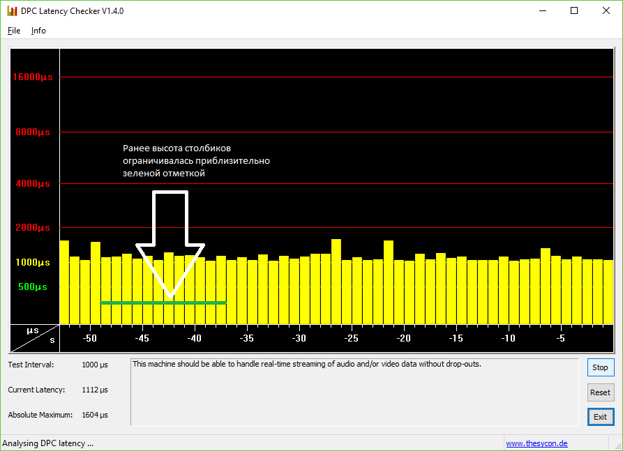 г) Периодически гонял на компе DPC Checker (в надежде выявить причину вышеобзученных проблем с аудиокартой), долгое время все было "зеленым", однако внезапно в какой-то момент идиллия рухнула и стали в тамошнем отчете появляться страшные красные столбцы (отключение драйверов сетевых приблуд и прочих укращений ситуацию не изменила). Во вложении скрин, сделаный перед созданием топика.