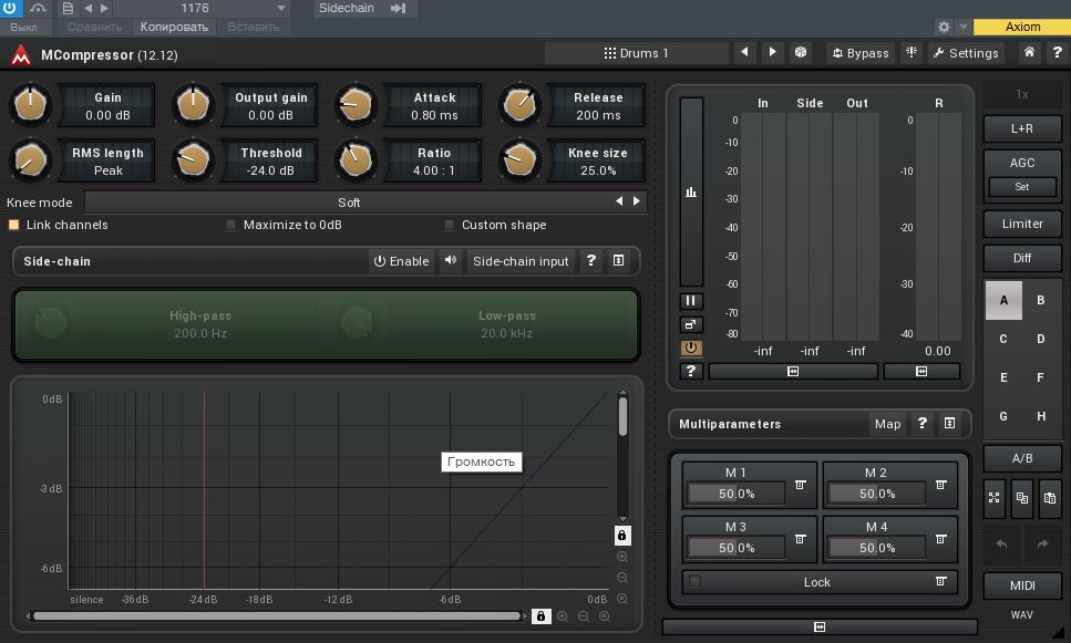 А звучание... Компрессор должен делать то что должен - плющить динамику по заданным параметрам. Если он это делает - хорошо, если кроме этого он показывает в подробностях на графике, что он делает, до и после, - намного лучше.
