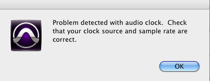 Запуск сессии в Pro Tools: «Problem detected with audio clock»