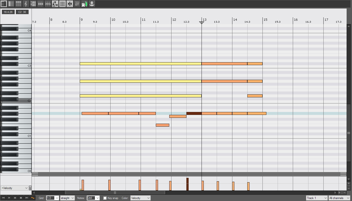 Пока делал скриншоты, нашёл полноэкранный режим пиано ролла в S1. Ок! Так намного лучше. Жаль, не через Esc выход, а к крестику тянуться каждый раз неудобно. И эта огромная пустая панель сбоку (или она тоже закрывается?). Ну и выделение нот. В S1 белые ноты становятся жёлтыми. Жёлтыми, Карл! Ещё одна мелочь отличающая от привычного.