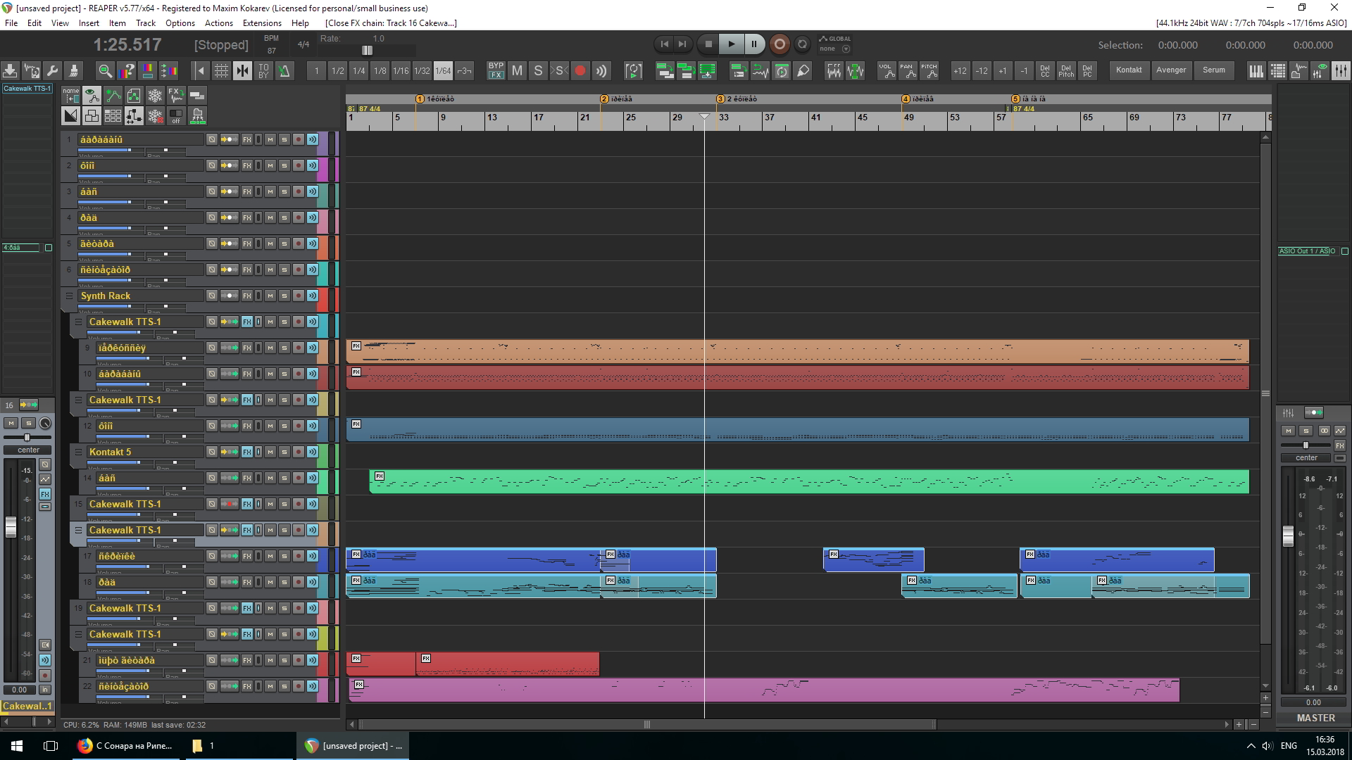 @Vilia33, он у меня сразу открылся. Я просто положил папку "1" на рабочий стол, открыл её и перетянул файл проекта на ярлык Рипера. При запуске подгрузились TTS-1 и Kontakt (он запросил какую то басовую библу, которой нет у меня, но это нюансы), всё открылось и играет.