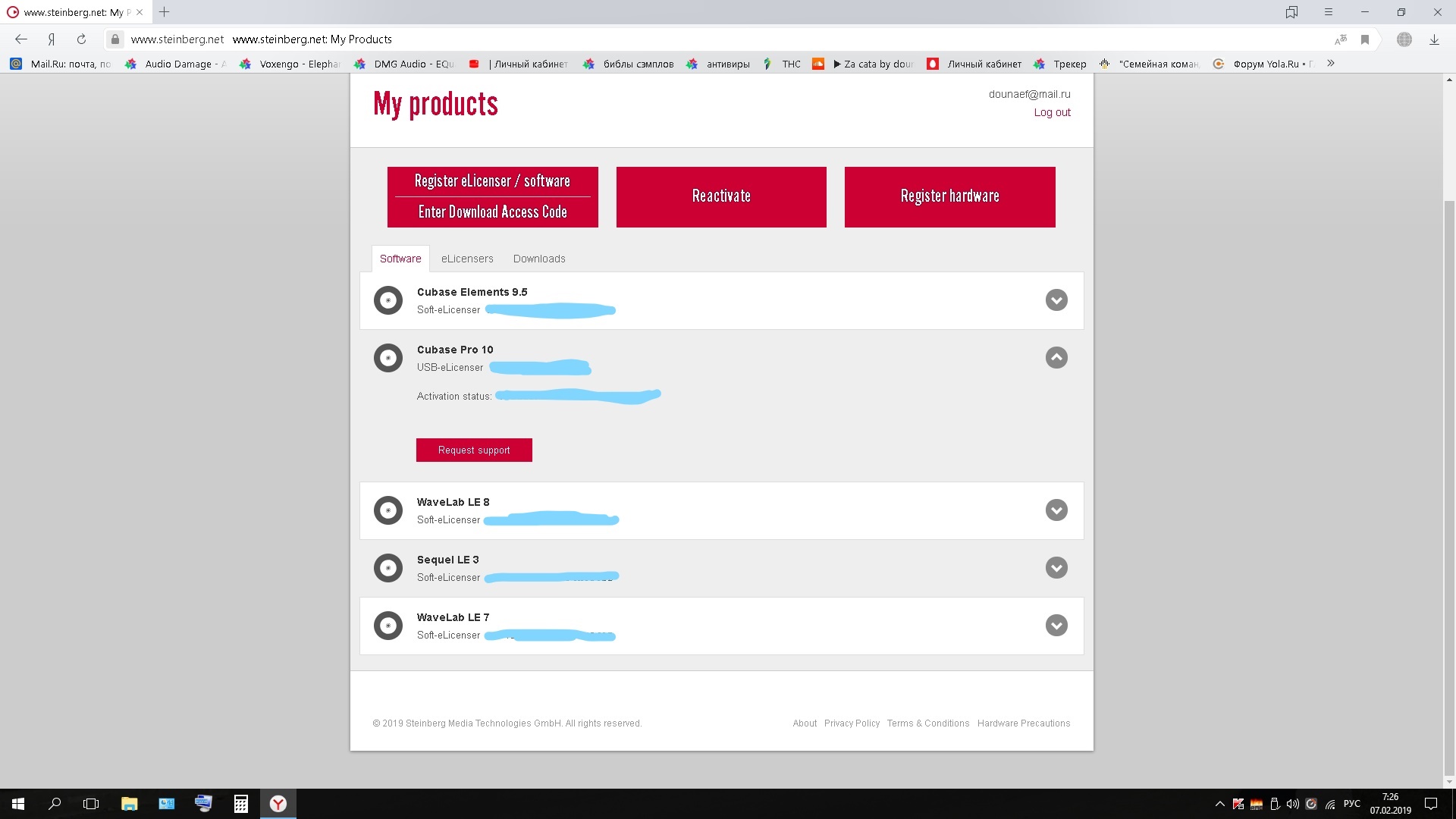 Я проверил свой аккаунт, у меня просто высвечивается серийник eLicenser и код активации Cubase Pro 9.5