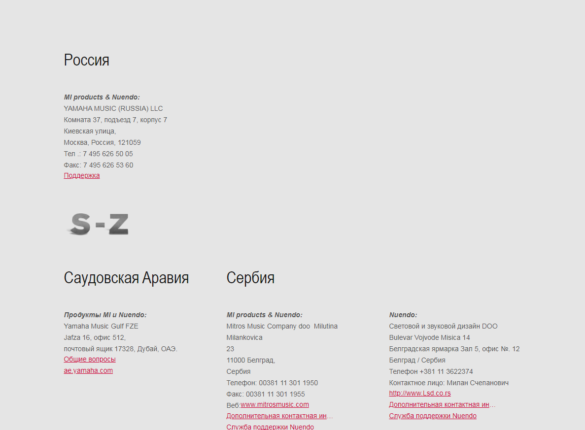 А кто-нибудь знает, как ДЕЙСТВИТЕЛЬНО связаться со службой поддержки Steinberg? На сайте можно хоть целый день бродить - всё по кругу. Адресов нет (только зарубежные номера телефонов).