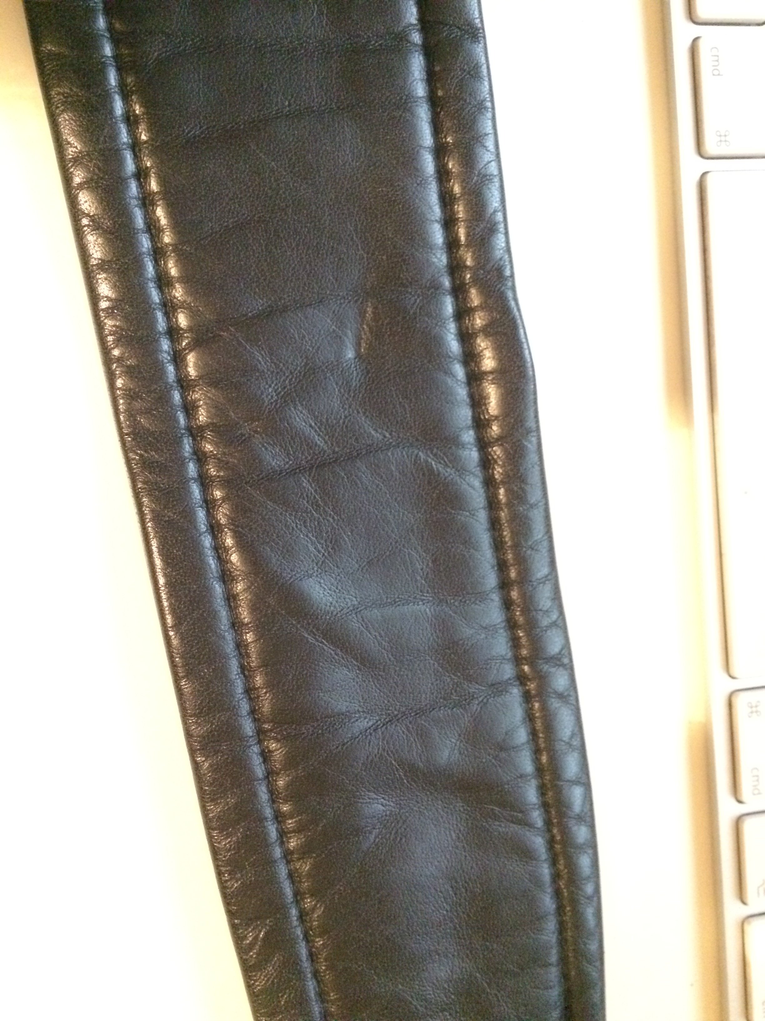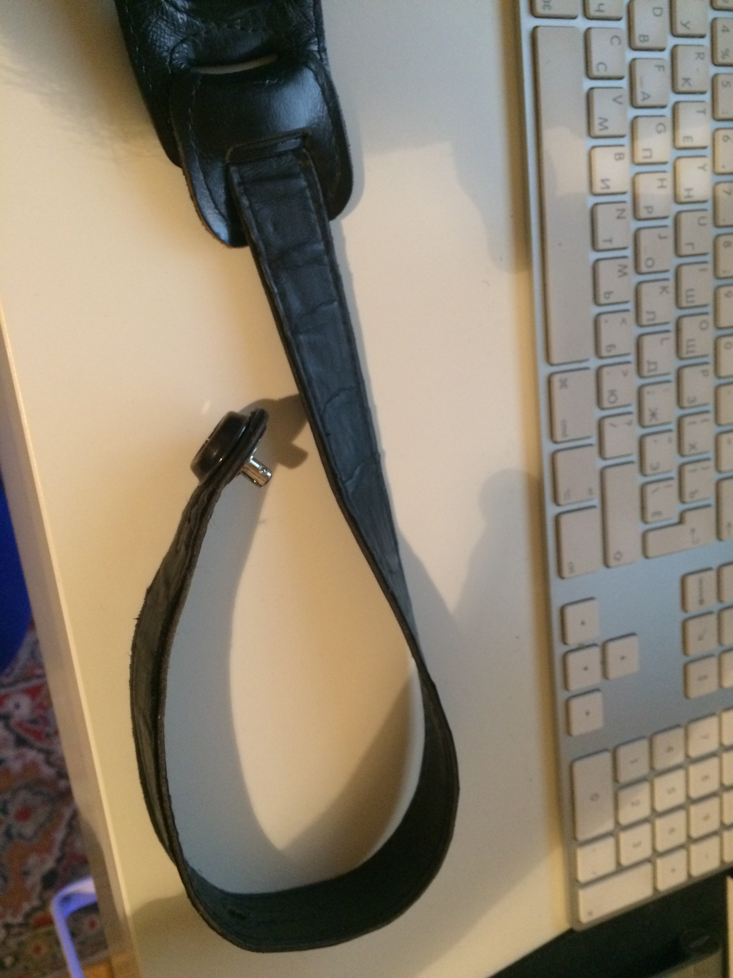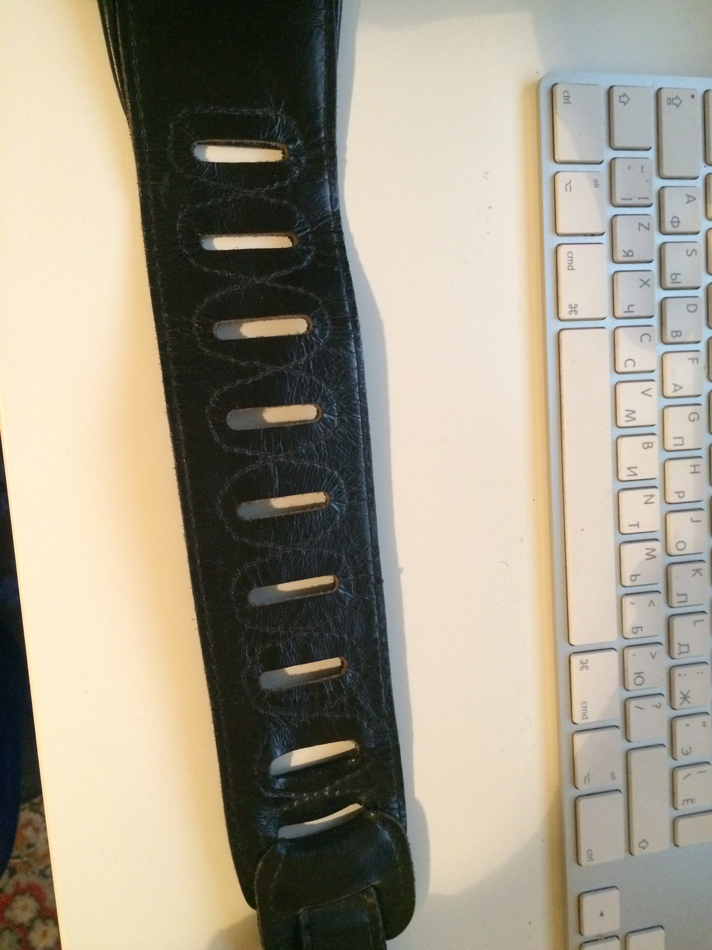 Касательно кожаных ремней для гитары. Они должны быть мягкими, многослойными. У меня есть фендеровский ремень, который мне нравился до того, как я начал пользоваться синтетическими. На его основу с внутренней стороны по всей длине нашита подушка из тонкой мягкой кожи с проставкой из какой-то ткани, что обеспечивает неплохое удобство его использования - он не натирает краями кожу в области плеча и шеи и достаточно комфортно скользит по телу (ремни с неотделанной внутренней сторой очень неудобны тем, что "прилипают", и инструмент бывает сложно вернуть в привычное положение, если ремень каким-то образом сбился). Так же в этом ремне достаточно перфораций для регулировки его длины. Единственный его минус, как и почти всех кожаных ремней, попадавшихся мне в руки - недостаточная длина даже с учетом поего невысокого (170+) роста. Парни повыше поголовно от этого страдают)
