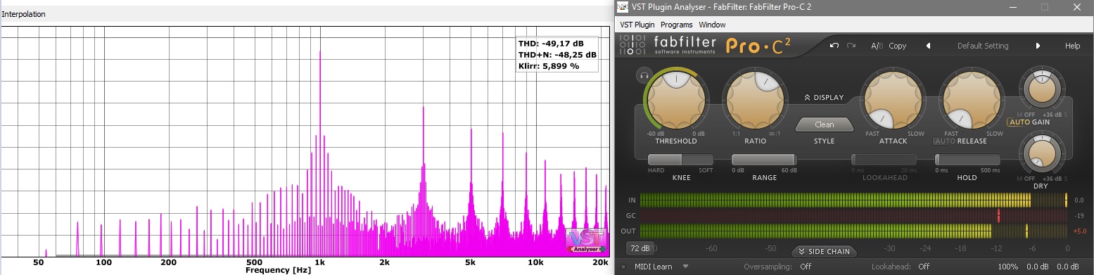 Но я советую FF Pro-c2- это мега инструмент. Функционален, куча алгоритмов, крутой сайдчейн, а в режиме lookahead 20ms чист как слеза младенца, даже оверсэмплинг не нужен, хорошо оптимизирован. 1-ю версию в опто режиме давно ещё сравнивал с uad- 2a- ничем не уступал...