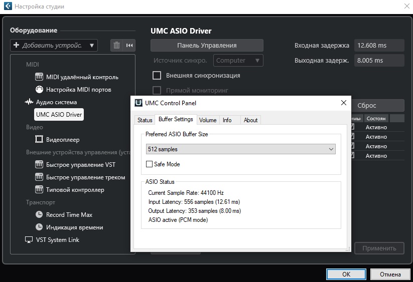 На последнем драйвере UMC ASIO в Reaper и Cubase проверил и мышкой и на миди-клавиатуре поиграл и понажимал максимальное кол-во клавиш одновременно - всё норм на 64 семплах с включённым "Safe Mode"