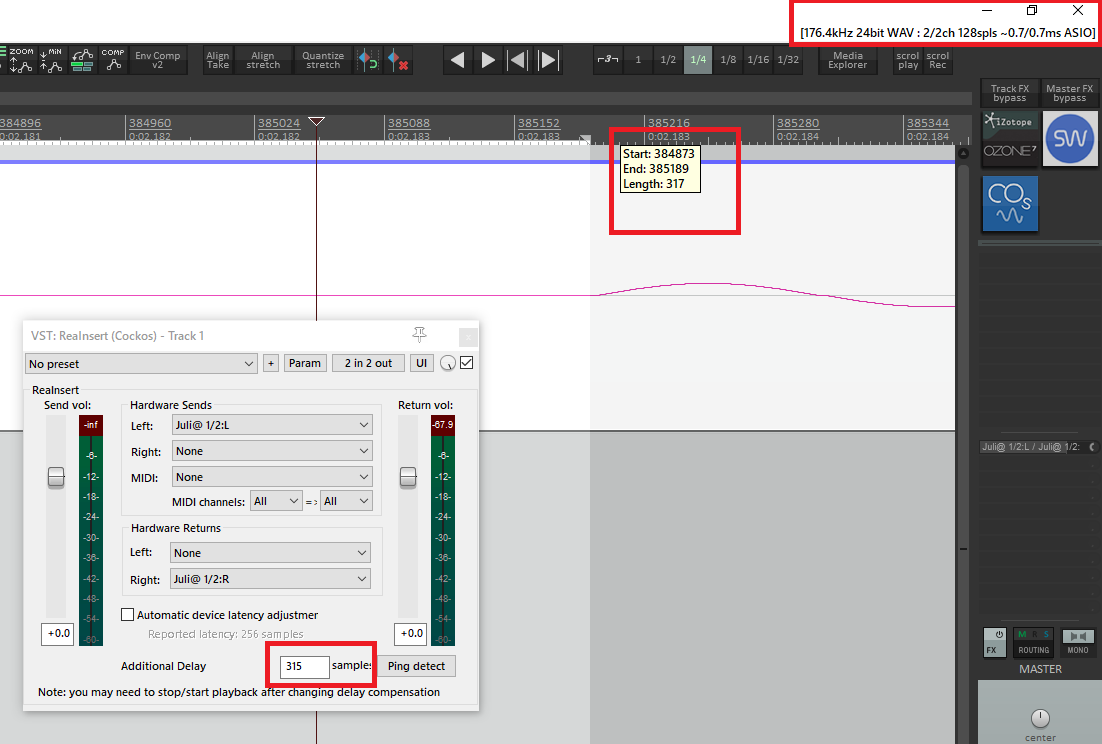 BS 128smpls SR 176.4kHz = 317smpls - 1,8ms