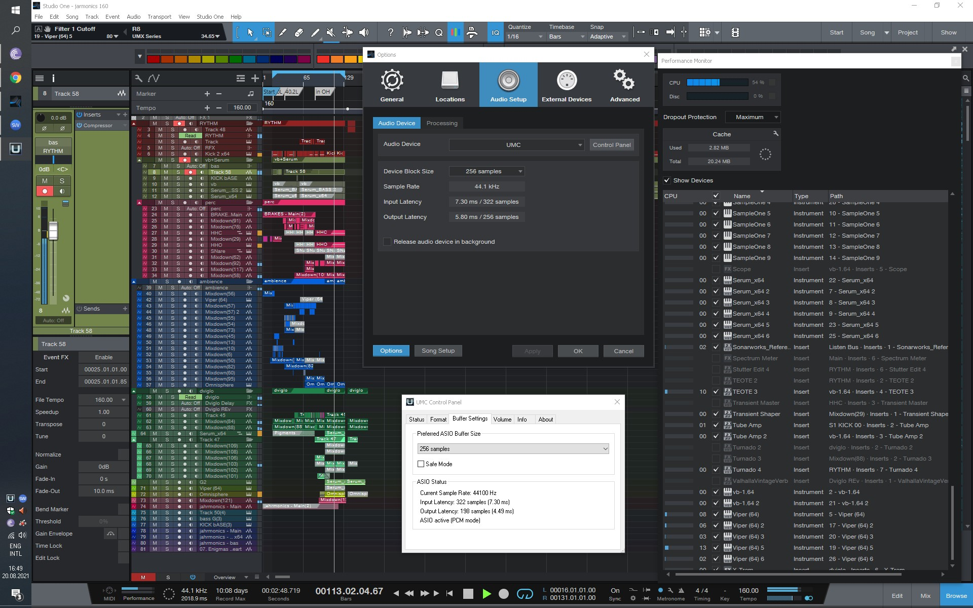 Подключил карту. Работает и на 32 сэмплах, но тяжелые плагины типа ndsp дропают. Рабочий буфер 128 (и с safe и без него). Получается в районе 8мс. Не вау конечно (примерно столько же мне и пионер выдаёт), но мне норм, я 64-ми в 200bpm не умею играть ).
