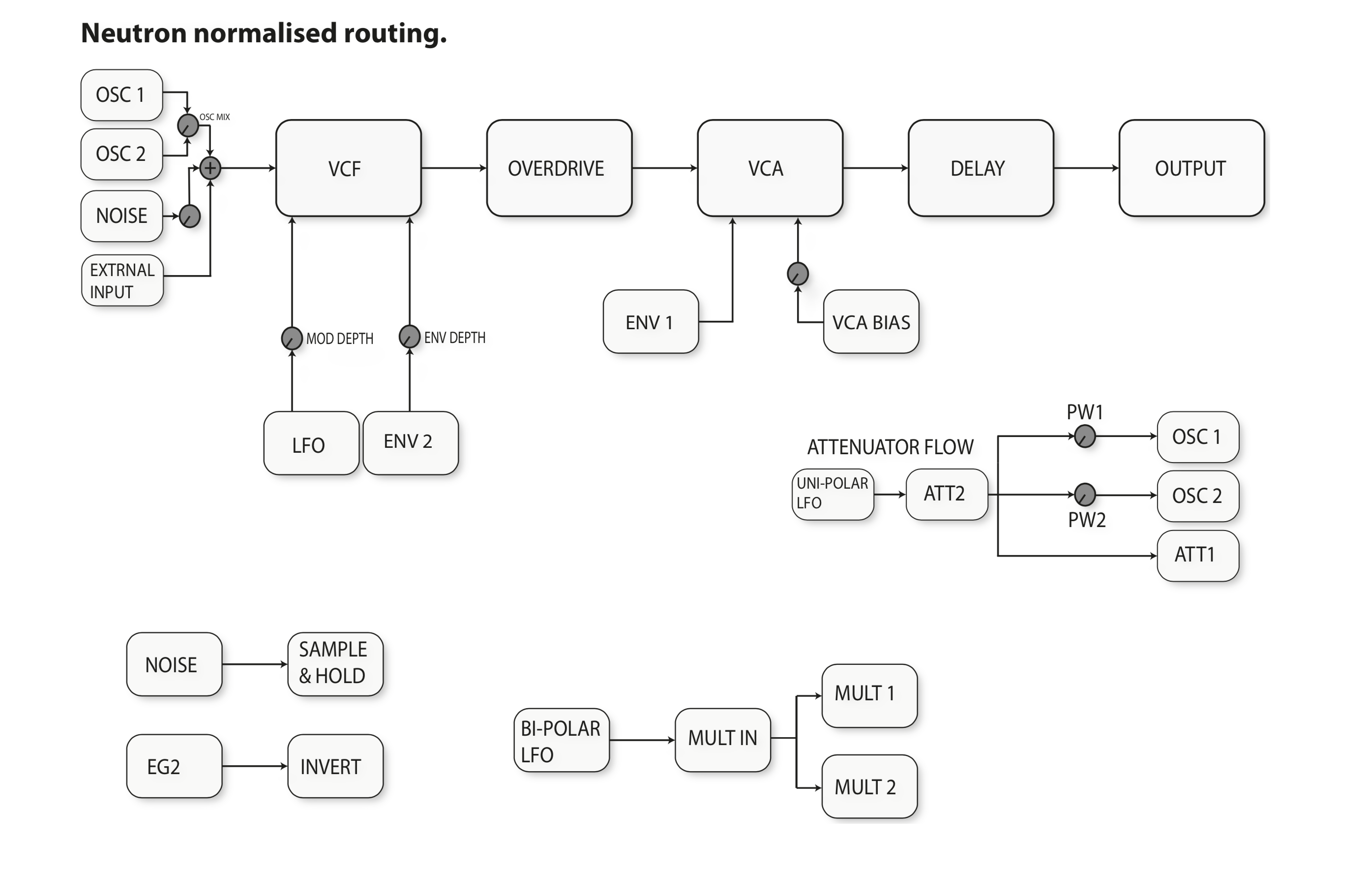 Я не думаю, что это экономия - дырок на панели ограниченное количество, вывели те сигналы, которые посчитали нужными разработчики этого синта. Он получился прикольным, с множеством фишек. Скорее всего то, что дилей остаётся в миксе связано с какими-нибудь резисторами защиты в цепях этого потенциометра и разъёмов модуляционной матрицы. При желании наверняка легко устранить с помощью паяльника и небольшого шевеления мозгами на свой страх и риск.