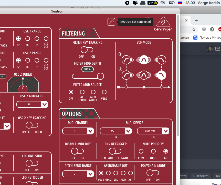 Behringer Neutron – полумодульный аналоговый синтезатор (1 онлайн