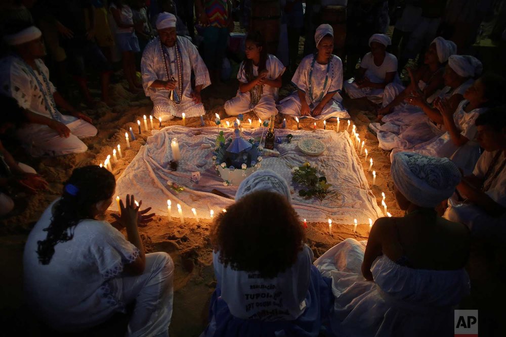 Ритуал на берегу - часть религиозного действа, проводимого последователями африканского верования candomble. Посвящен он владычице морей, рек и прочей воды, по имени ЙеманжА, матери всего сущего.