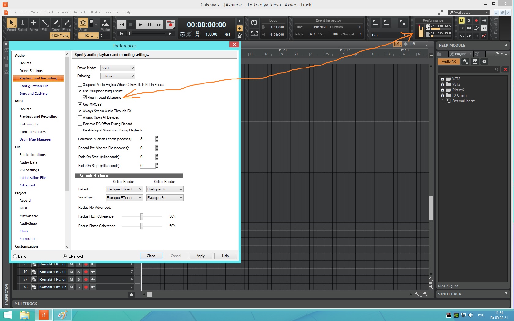 фигасе плагинов на трекахПри включении Plugin Load Balancing начинает Cakewalk подвисать ( стопорит или подхрипывает звук ). Вроде должно быть лучше ( легче для копмпа ). Менял задержку - тот же результат. Виндос 8.1 / 64, Cakewalk - последнее обновление. Проект 4800 / 24 бит.