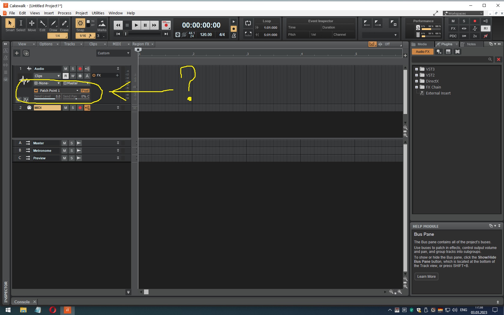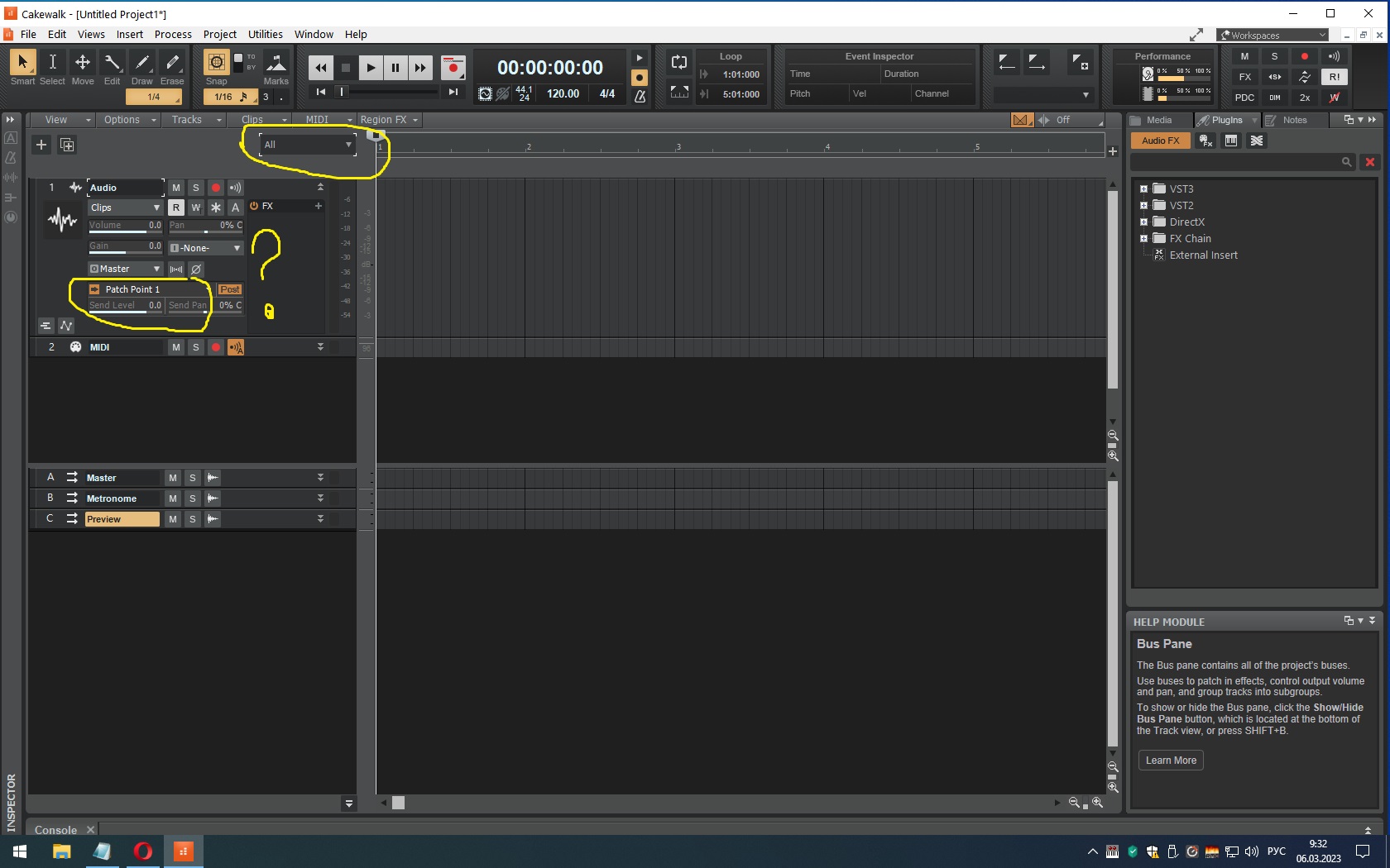 Не отображается дорожка посыла Patch Point . Не могу сообразить в чём проблема ( глюков не было) . Посылы на новый трек или новый bus отображаются.