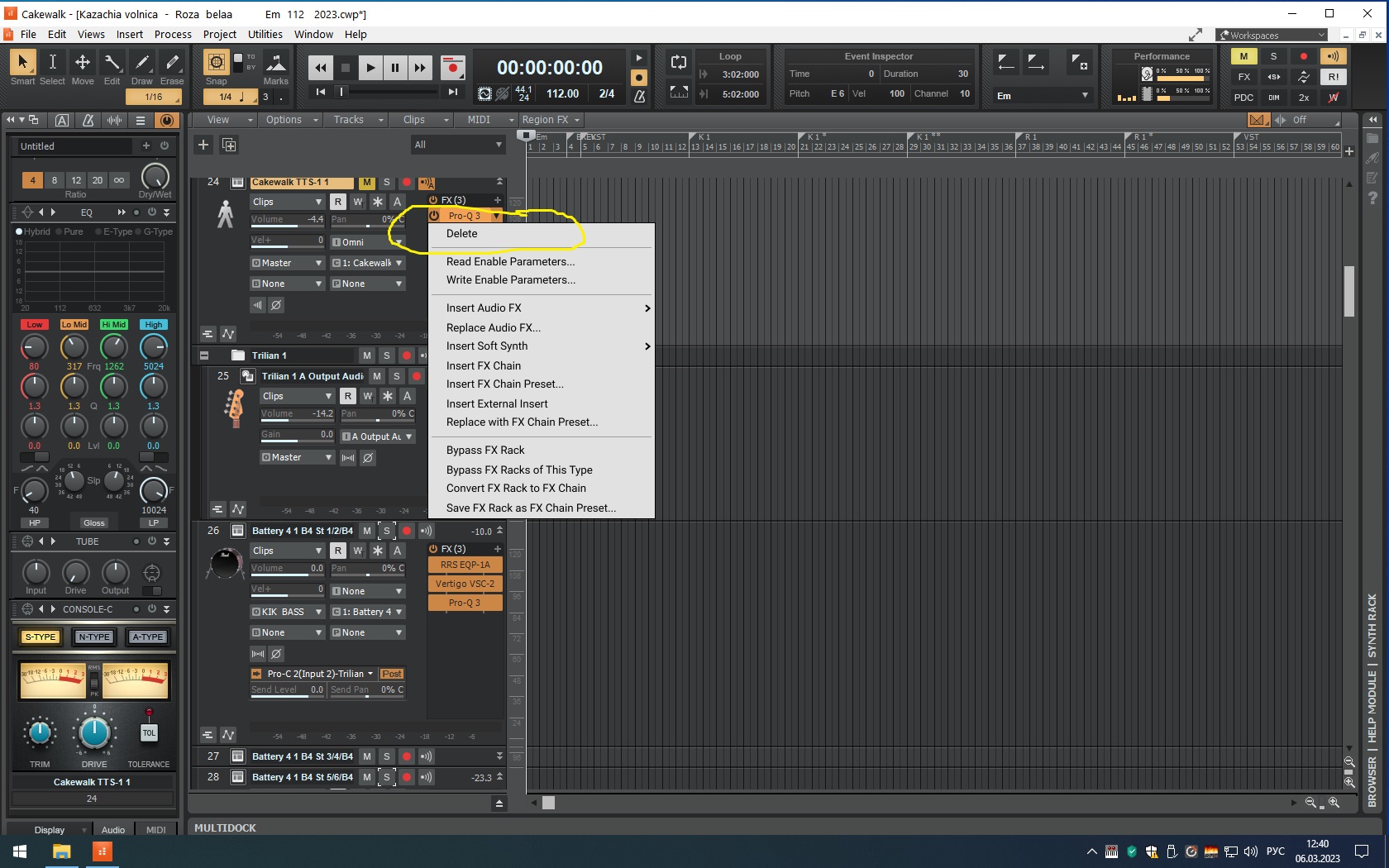 Вполне возможно, что это был луп! Можно попробовать сделать Bounce To Clip - то есть превратить аудио луп в обычный аудио клип и попробовать снова. Очень непривычно с русификацией. Я сам не большой сторонник всяких иностранных слов в русском языке, но в работе с Cakewalk предпочитаю оригинальный интерфейс. Уж больно невнятно переведено - порой в ступор вводит))) Да и привычка - в 90-е все аппараты были англоязычными, и основные действия (Save, Open, Split, Delete и т.д.) запомнились прочно и надолго. Переведённые термины звучат и длиннее и страннее))))