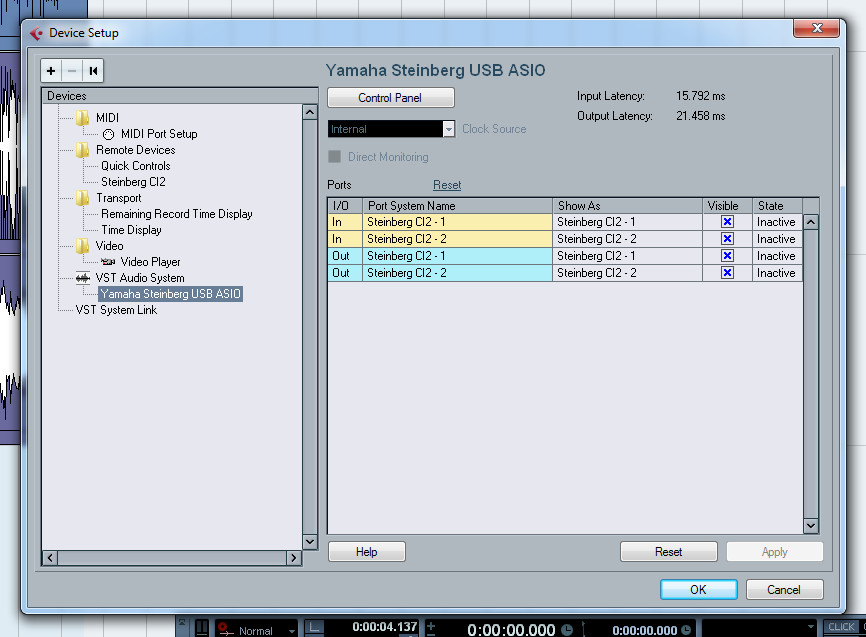 Если пропустили при открытии проекта - можете найти эти настройки в F4 - VST Connections - Inputs/Outputs/Studio.