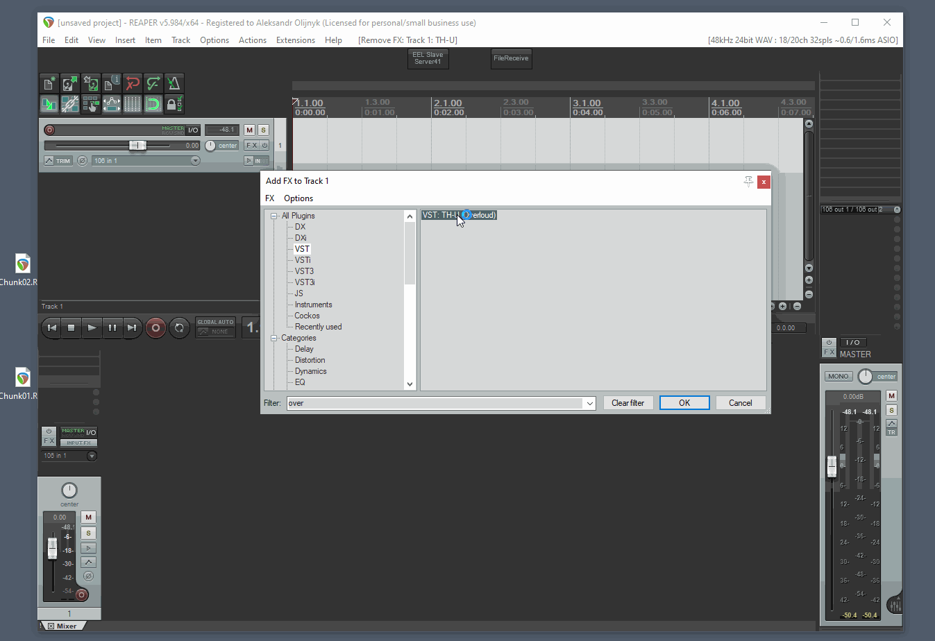 Так точно так-же и в Рипере я сделал - но Рипер поднял из офлайна плагин с установленным мной Пресетом, а Битвиг - нет!