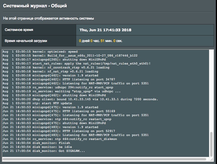 Идея хорошая! Ещё б я понимал что-нить в этих логах..)) Отослал в техподдержку. Вижу только, что он при перезагрузке почему-то не сохраняет (или стирает?) записи предыдущего сеанса - в логе на последнем на 2м скриншоте нет строк, которые есть на предыдущем - странно.