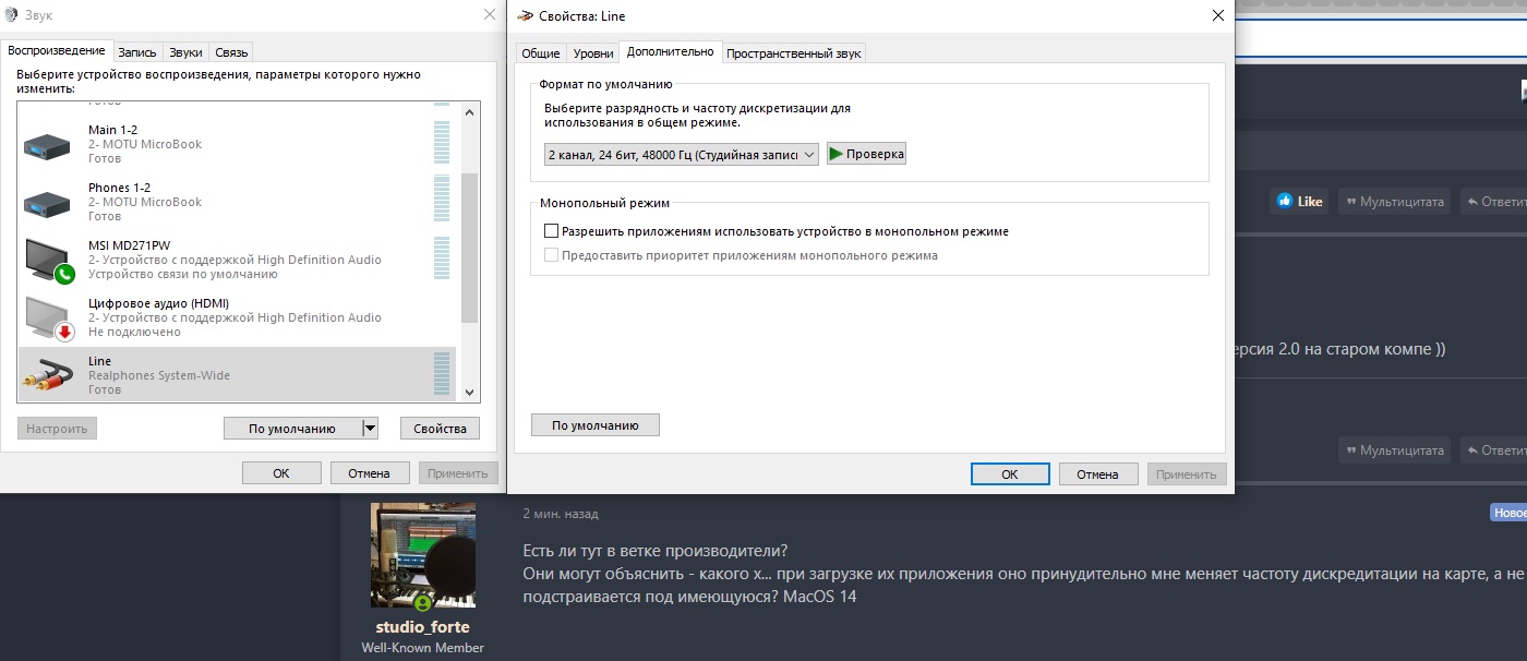 Не знаю про макось, но в винде появляется новое устройство realphones system, у которого отдельный выбор ЧД в системных настройкахЕсть ли тут в ветке производители?