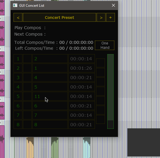 Хочу поделиться опытом использования. Версия скрипта 22. Уже не помню, первоначальная или исправленная. Ни одного глюка, падения и т.п. Еще раз огромное спасибо!!! Помню наши споры про защиту от дурака. Одна проблема: после добавления новых песен в программу (регионов в проект) при открытом пресете новые регионы не видно. Понимаю, это обусловлено постановкой задачи при написании скрипта, т.е. он так работает. Но вот если бы он "сканировал" регионы не только при запуске самого скрипта, но и при загрузке пресета, было бы круто! Т.е. просто в существующий пресет добавить вновь появившиеся регионы, не переписывая пресет заново. Ещё раз подчеркиваю: пользоваться скриптом можно только тому, кто тщательно подготовил весь проект для живой работы вообще. Т.е. заготовил песни, расставил их в проекте, прописал изменения темпа для клика (!!!), и т.д. Когда песни положены в проект никуда их двигать или менять длину не нужно! Только добавлять новые песни-регионы в конец проекта. У меня в каждой песне куча автоматизации прописано, включение пресета по миди на внешней обработке, загрузка конкретного для этой песни патча для VST-синта. Я никуда это двигать не могу, иначе всё посыпется, и никакая защита не поможет.