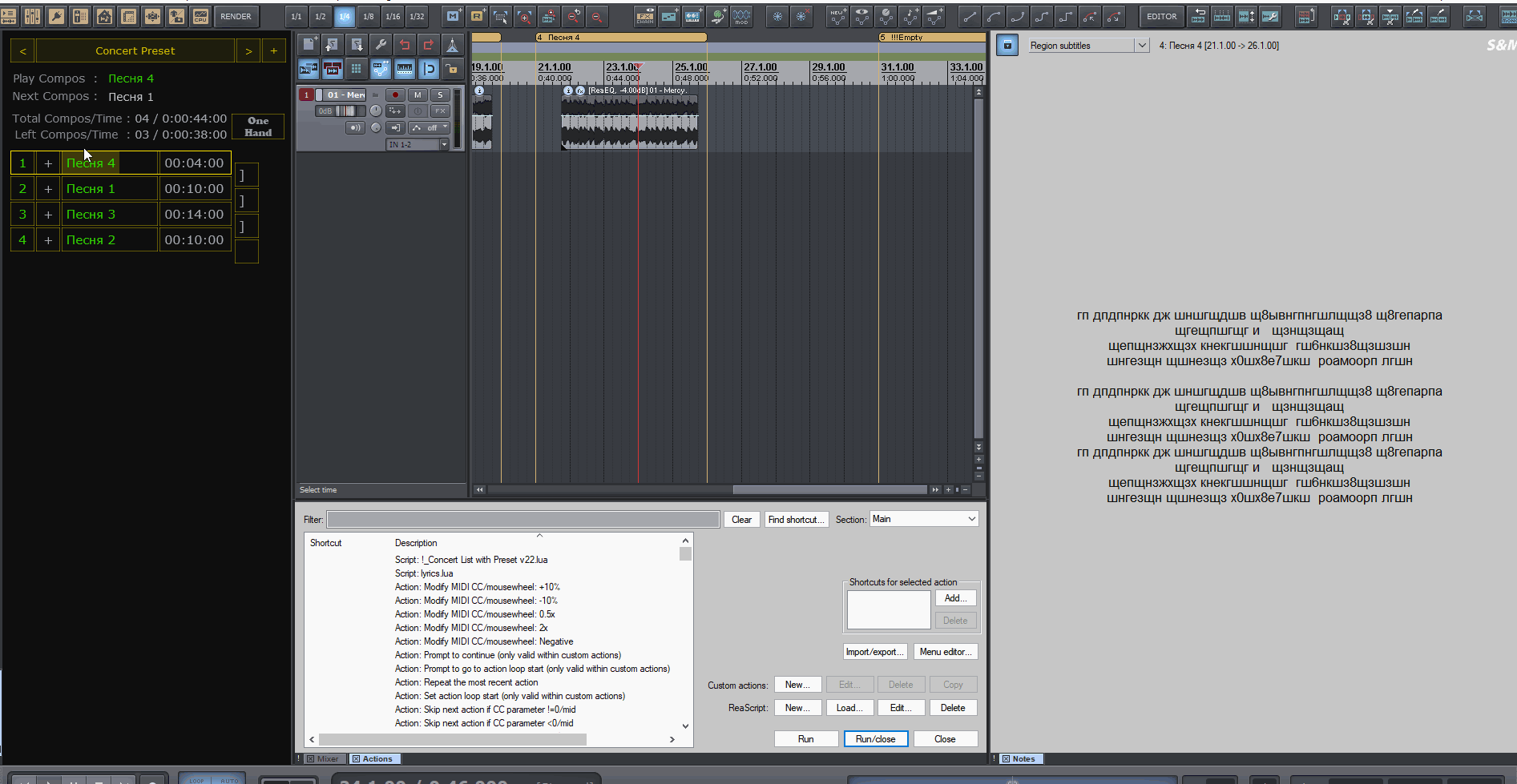 - на каждом из концертов, открыв всё ТОТ ЖЕ Проект вы запускает скрипт и выбираете Пресет для Конкретного Концерта и имеете полностью подготовленную программу