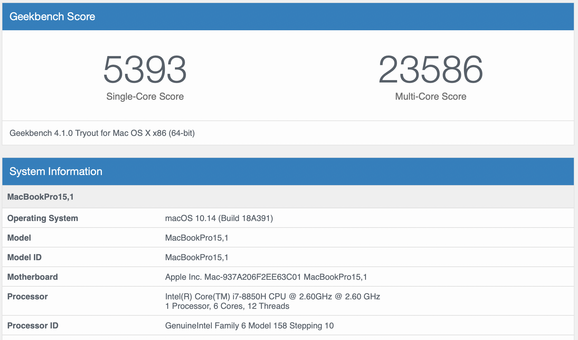 автор гикбенча на момент выхода макбуков на 6 ядрах да и вообще нового поколения сам признал что тесты прежние - врут по ряду причин