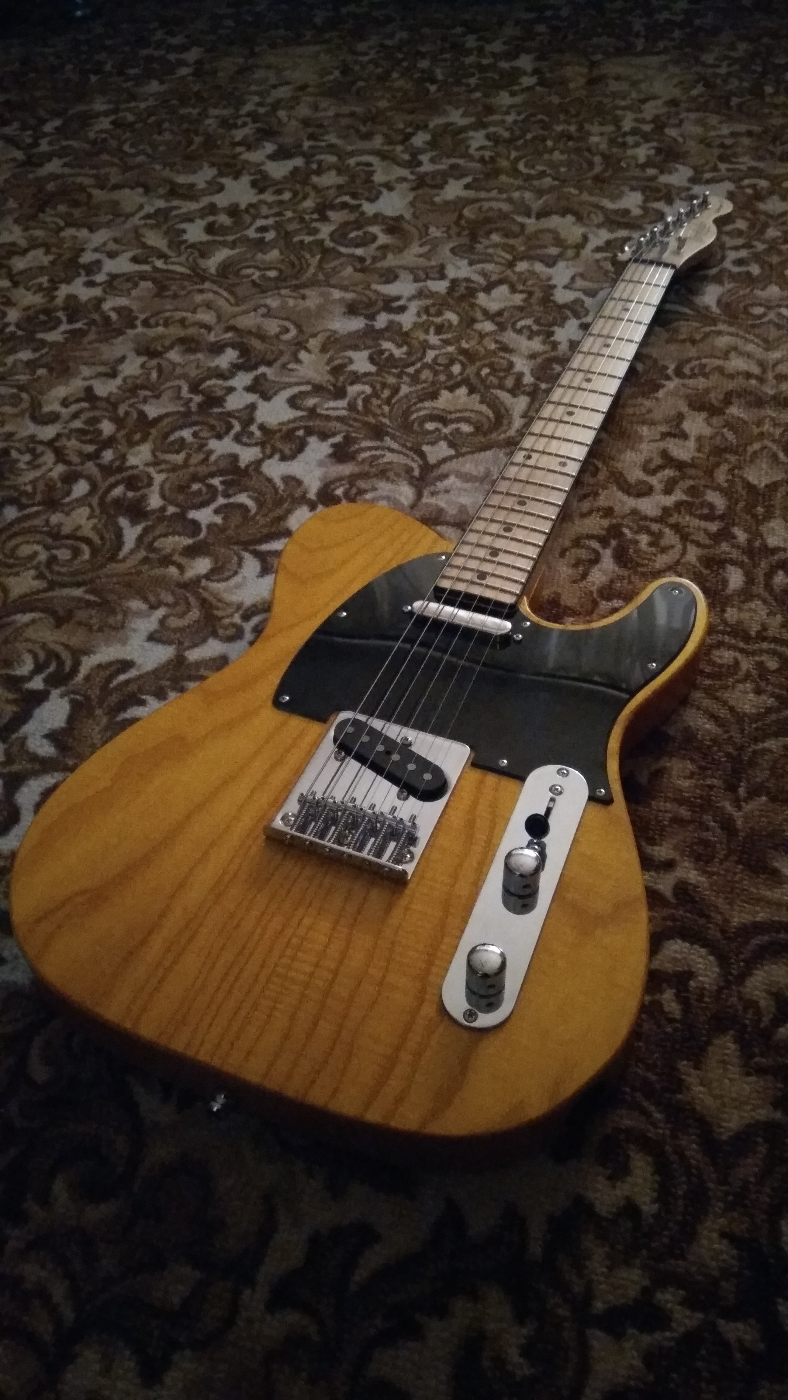 Warmoth с ольховой декой - пока только пассивный EMG стоит в бридже и звук мне нравится, даже на чистом звучит вполне приятно, если тон покрутить, то даже становится похоже на электро-акустику. На перегрузе звук очень чёткий.