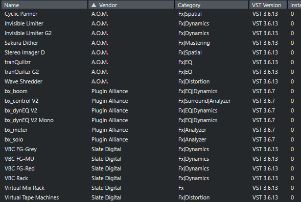 • Whether a VST3 plug-in or instrument supports 64-bit processing precision is up to the manufacturer of the plug-ins. Some manufacturers advertise an internal (!) 64-bit processing for their plug-ins but still do not support a complete audio processing in 64-bit double precision throughout the whole signal path.
