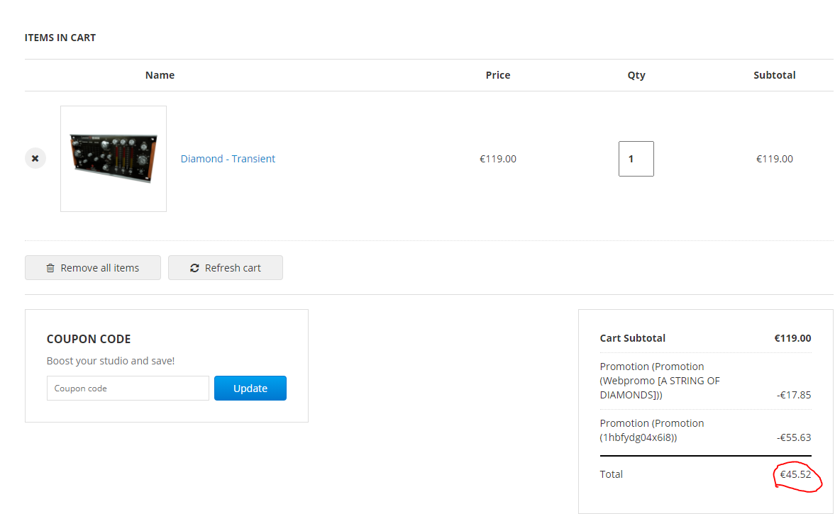@Цыхра, мне то же пришла доп 15% скидка. В тексте указывалось, что это в связи с тем, что ранее были куплены плагины от студии dmi.