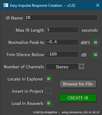 Непонятно, почему этот скрипт оставляет в самом начале импульс - "Direct" как бы. То есть, чтобы использовать отклик, например, реверба как замену этому ревербу, приходится подрезать этот начальный импульс каким-либо образом (к примеру, используя Trim в Reaverb).