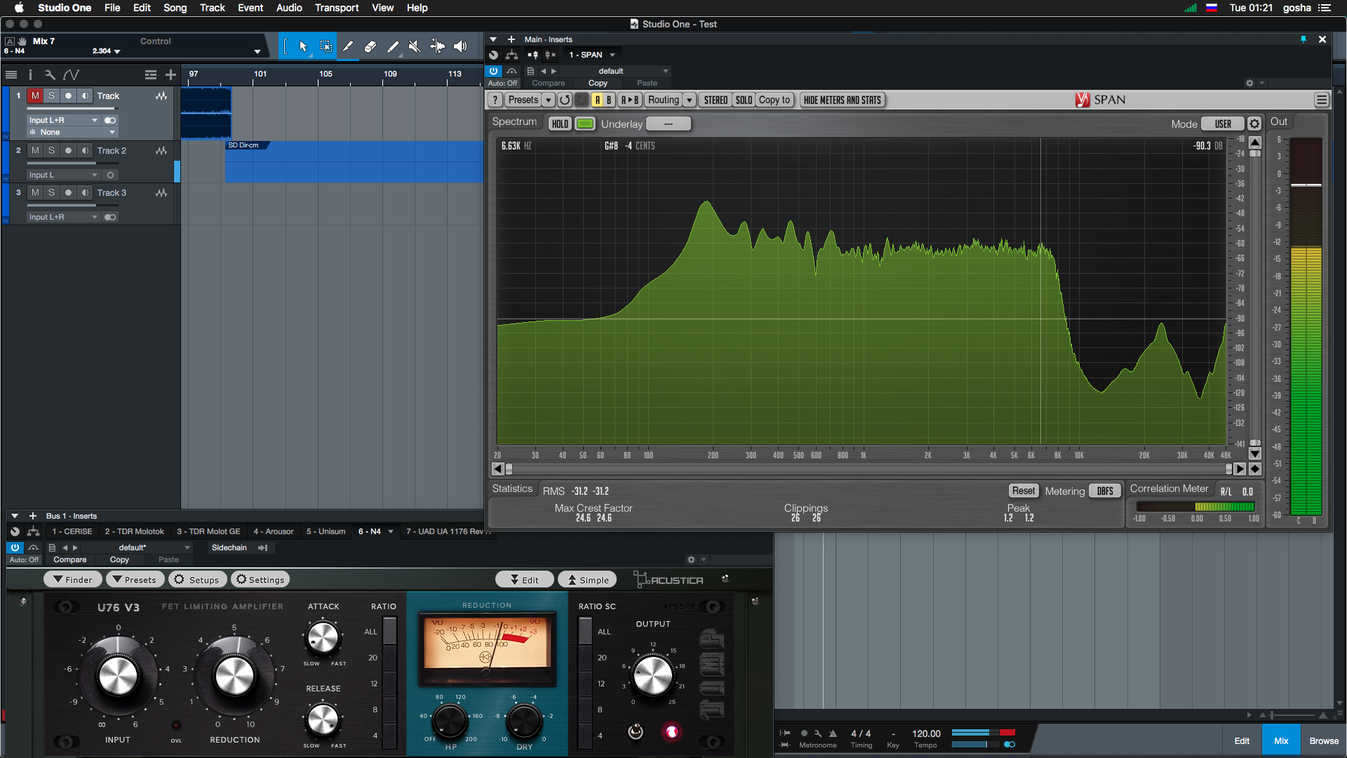 А каким образом это относится к слышимому диапазону? Просто не замечал на слух некорректной работы в компрессорах от АА. Есть чистые как слеза, есть грязные как палитра художника...Вот скриншот поведения 1176 от Тима и UAD.