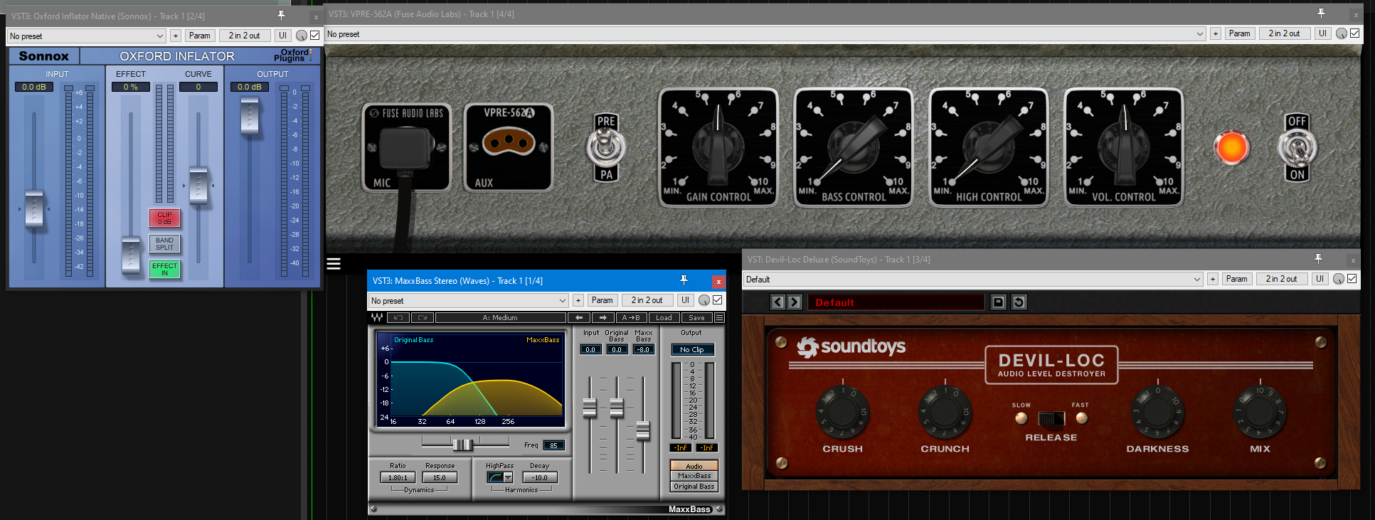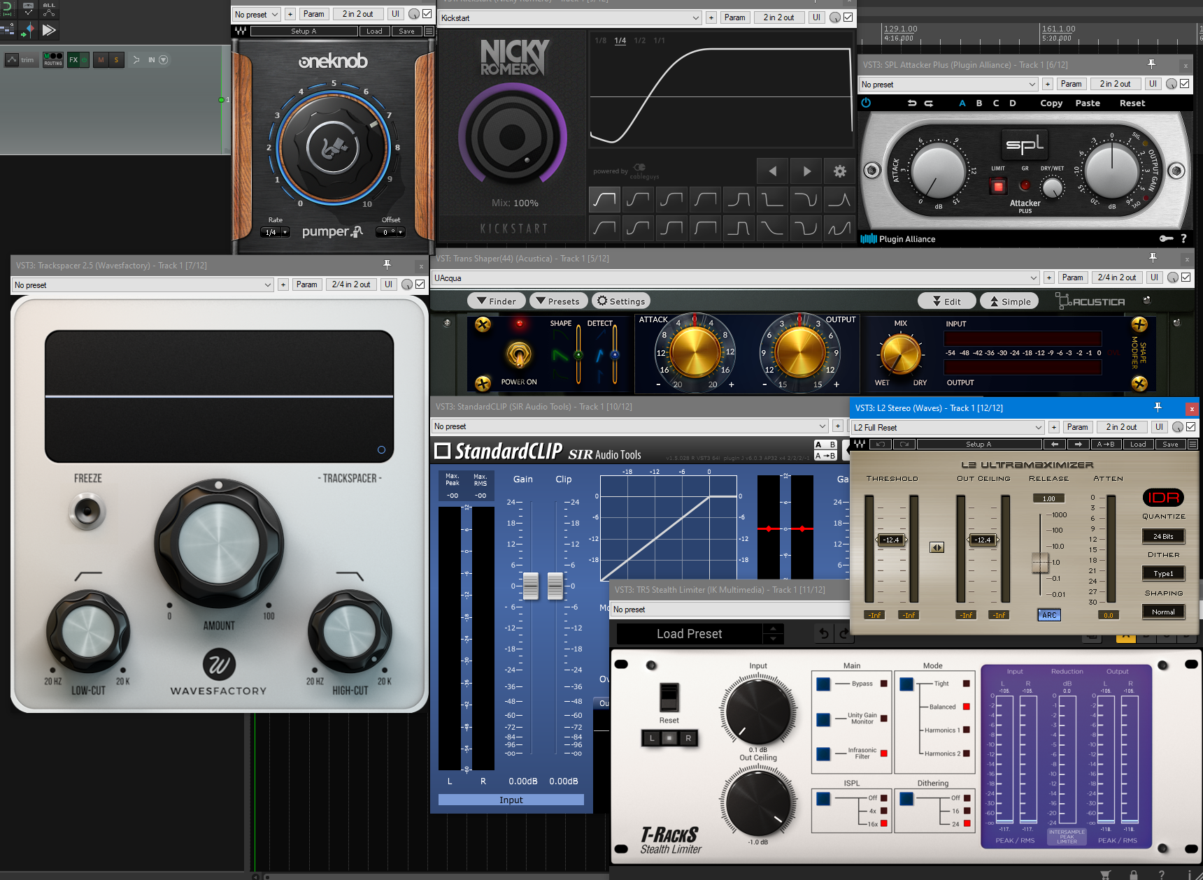 Чесно говоря, даже IK сейчас не всегда использую, раньше воротил преампы-пленки поканально .. надоело чтоли. Хирургия на сведении, на мастере "TEOTE - IK SSL - Inflator - Stealth Limiter" всю погоду делают. Иногда надо mid-side eq, low band comp, редко.