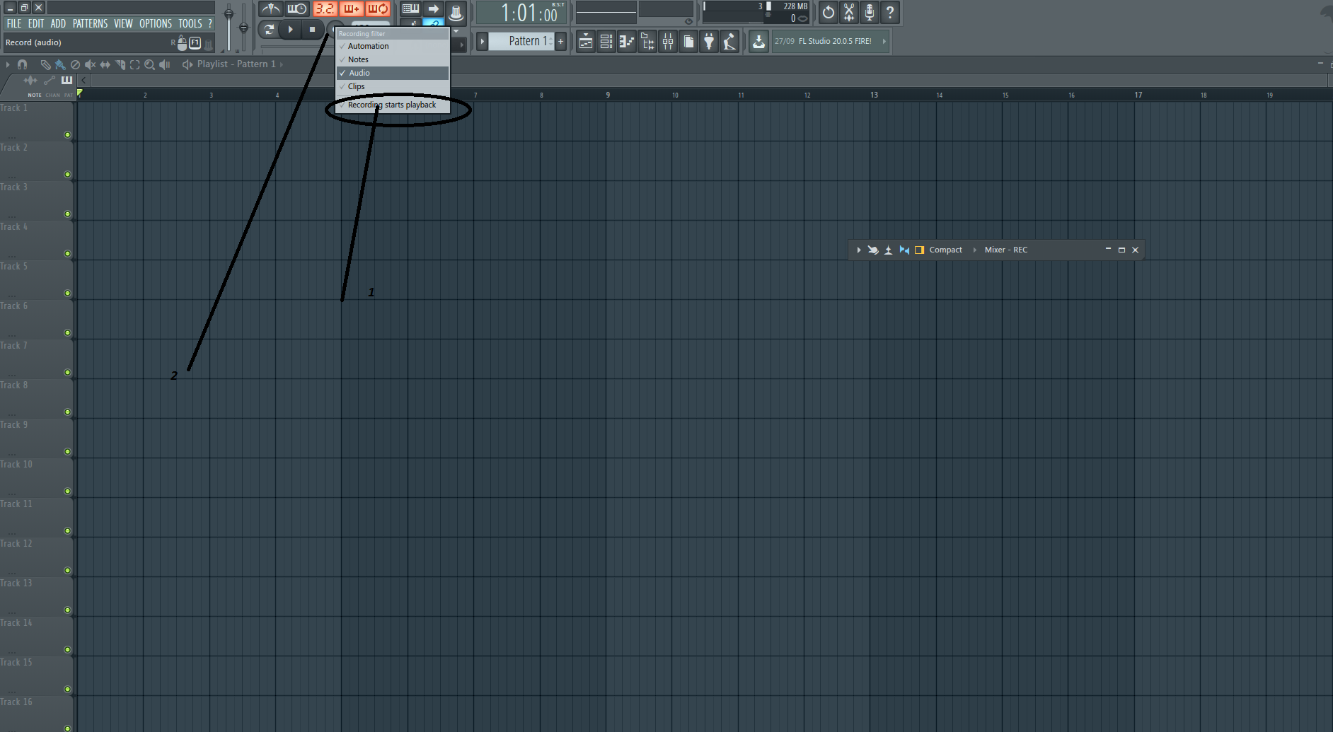 Всем привет,:=) не подскажите есть ли в фл студио возможность, нажатия сочетания клавиш, чтобы пошла запись? Имённо нужен вариант с audio into the playlist as audio clip