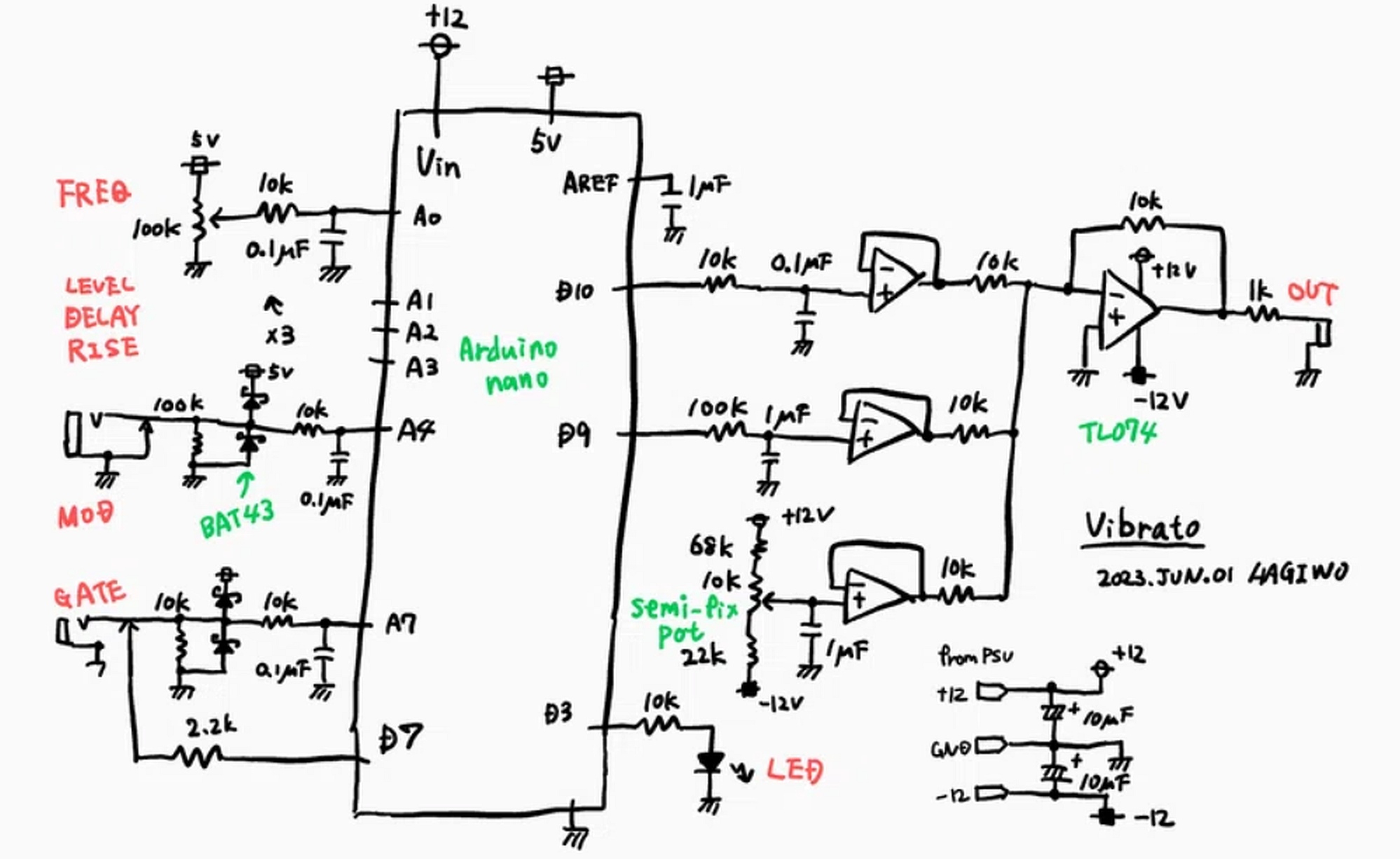 Задача простейшая: взять сигнал с lfo, который колеблется 0...+3в, и смещением установить его симметричное колебание относительно 0.