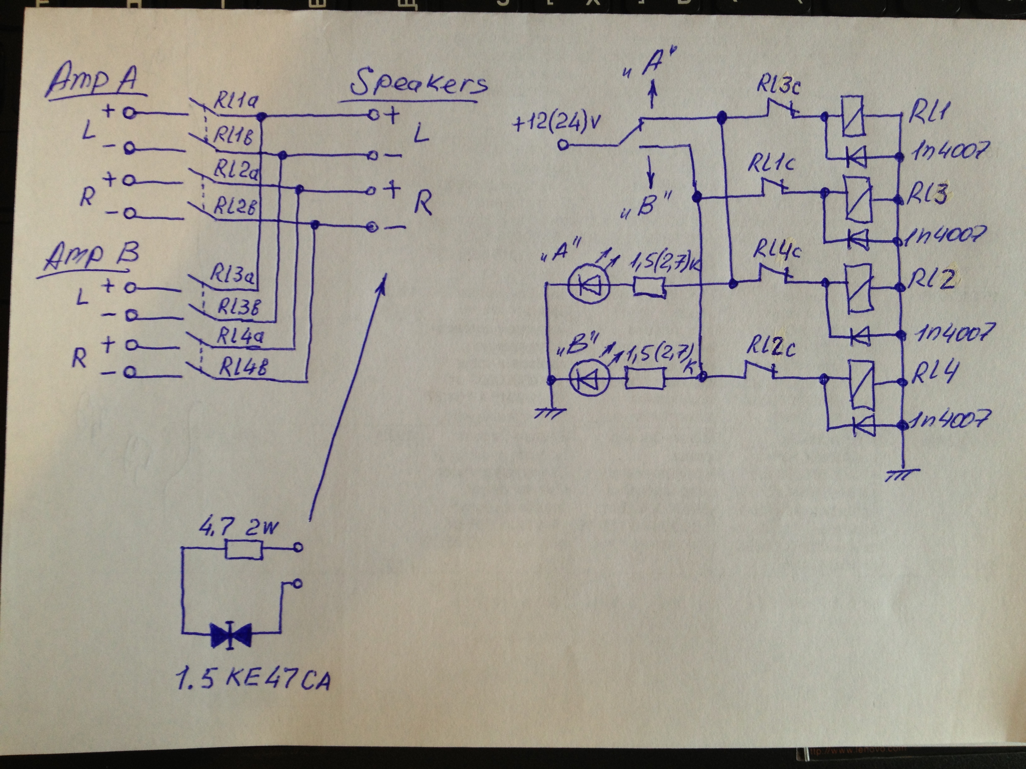А схемку не дадите, как "на горячую" переключать акустические системы и усилители без вреда?