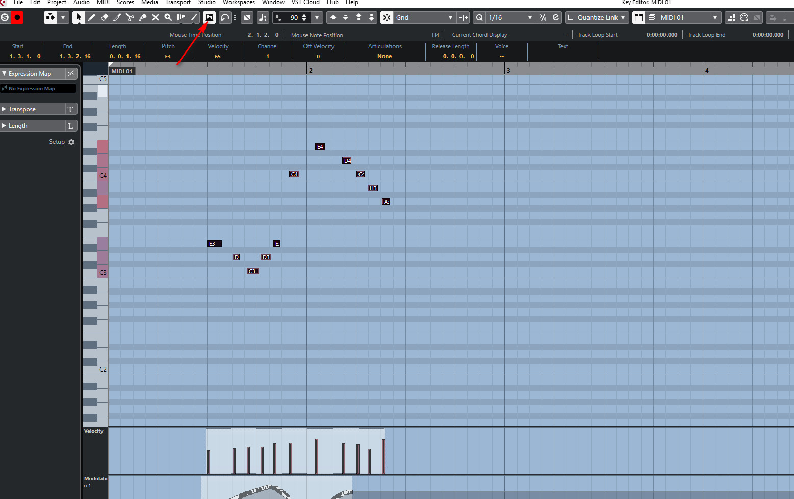 Коллеги, подскажите, плз, как в key editor привязать параметры CC к ноте?