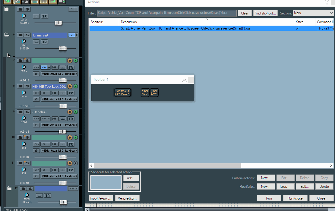 @Archchie, вот, разобрался при каких настройках скрипта Select next-previous track(skip minimized folders), у меня, правильно работает Zoom TCP and Arrange to fit screen(Ctrl+Click save restore) - не перекидывает выделение на первую папку.