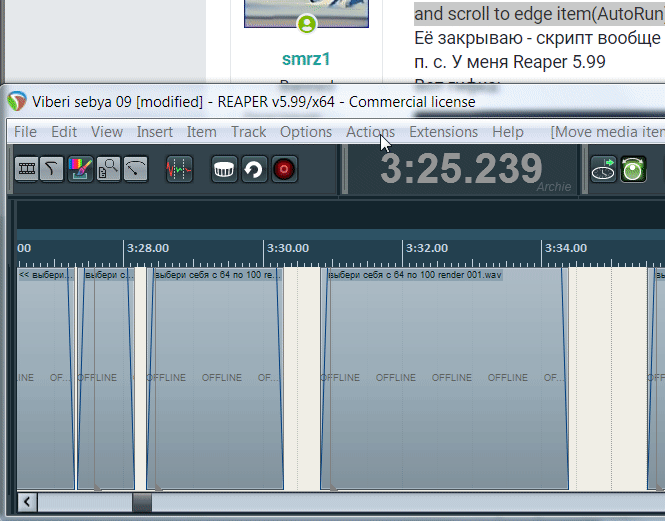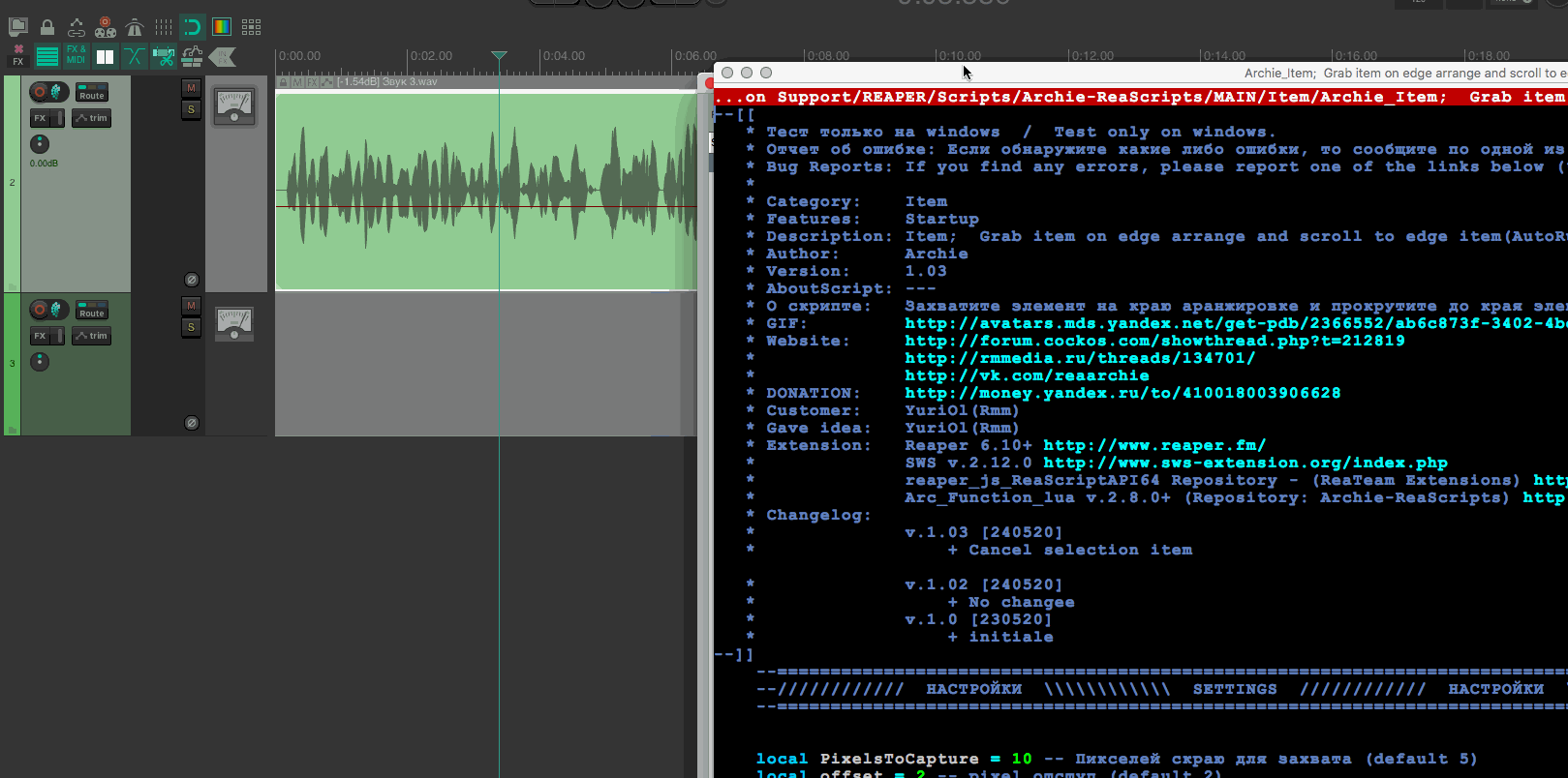 @Archchie, перегрузил Reaper третий раз, перестала появляться табличка ...tem on edge arrange and scroll to edge item(AutoRun).lua:132: attempt to index a nil value. Скрипт не отключается, но работает как v 1.02 и айтем все равно выделяет. Хотя скрипт обновился, делал даже с удалением, и повторной установкой. v 1.03, но выделяет айтем...