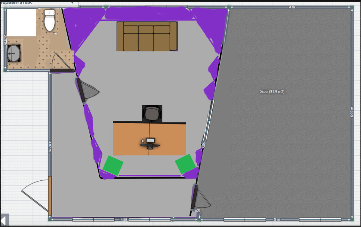 опять же тут мы имеем вместо комнаты отдыха бесполезный коридор буквой Г) просто потеря полезного пространства.... Но в целом я изначально похоже предполагал сделать контрольную комнату, смущало только окно сбоку...