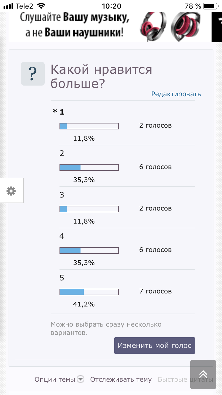 После прослушивания, предлагаю проголосовать за наиболее понравившееся звучание. Ответов разрешается выбрать 2, если вдруг вам понравился не один микрофон и сложно сделать единый выбор). А в комментариях пишем мнение, под какой цифрой какой микрофон.. и другие любые комменты приветствуются:)