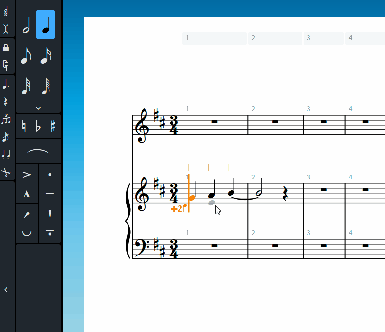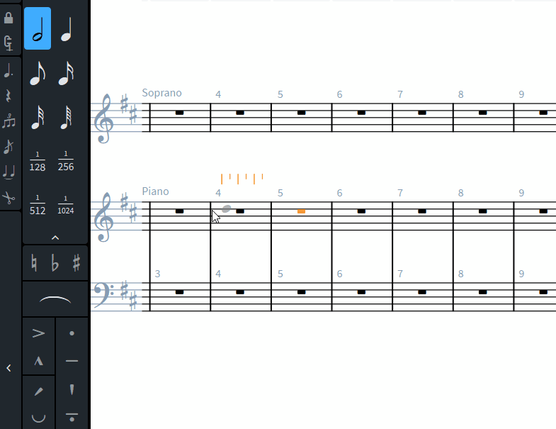 2. Есть ли способ максимально сузить границы такта, если в этом такте ничего нет, кроме паузы? У конкурента для этого достаточно подтянуть курсором тактовую черту.