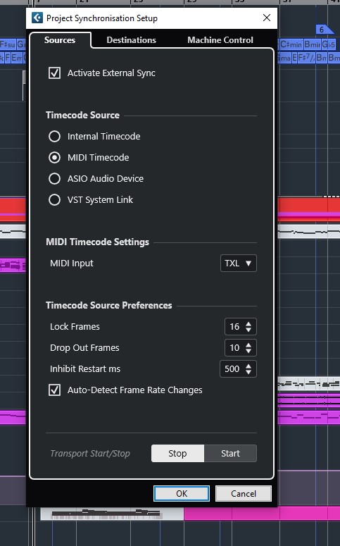 А дело вот в чём. MIDI Time Code (MTC) — это тот же SMPTE, только переданный по MIDI. Он состоит из временных меток и НЕ передаёт информацию о темпе. MTC по своему устройству какбэ вообще не имеет отношения к MIDI, хотя и передаётся через MIDI-канал. Соответственно, нет способа в нашем сетапе автоматически синхронизировать темпы, только вручную. DAW (Cubase) здесь работает чиста-тупо как магнитофон, синхронизируясь по физическому времени, а не по долям и MIDI-тикам. (На это обстоятельство сходу мог бы указать любой олдскульный звукореж, если бы заглянул в эту ветку.)