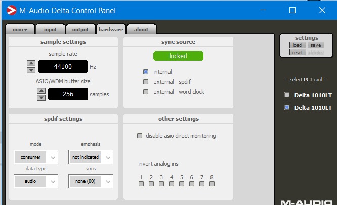 M-audio Delta 1010LT на Windows 7 и 10 x64