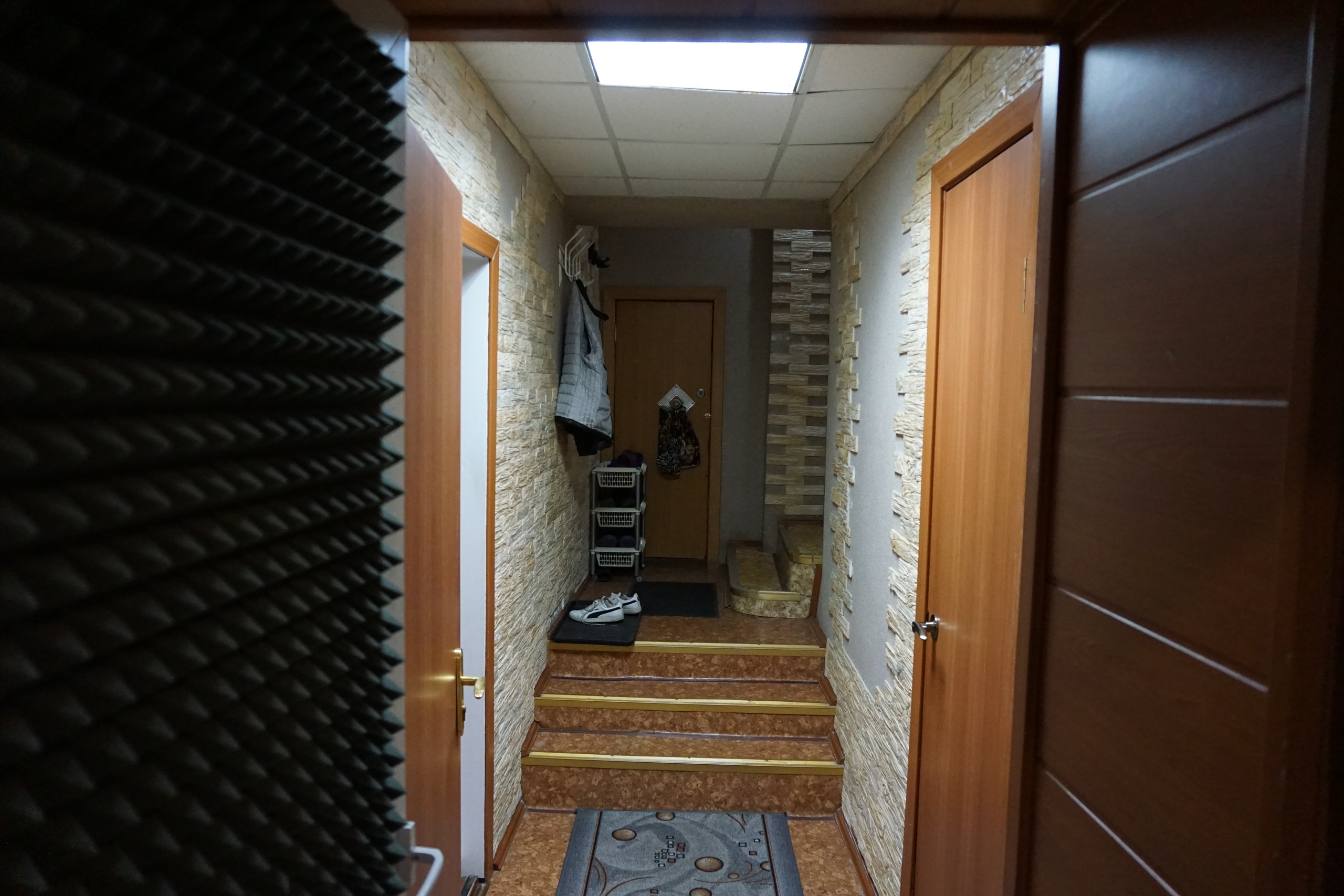 - нежилое помещение 60.5 кв/м по зеленке (по факту около 70кв, отдельный вход без соседей). Входная зона и коридор, тон-ателье (вокальная комната/прописочная), аппаратная (звукорежиссерская), комната отдыха, уборная, кладовка.