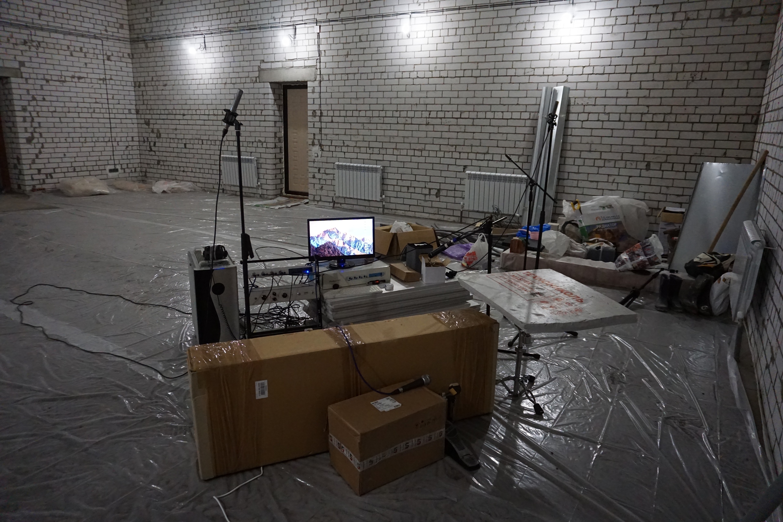 Да вроде всё нормально... Сейчас делают отопление ВЕЗДЕ, разумеется. Но отделку тон зала не раньше лета, вот сейчас отопление запустят и пусть до лета сохнет)