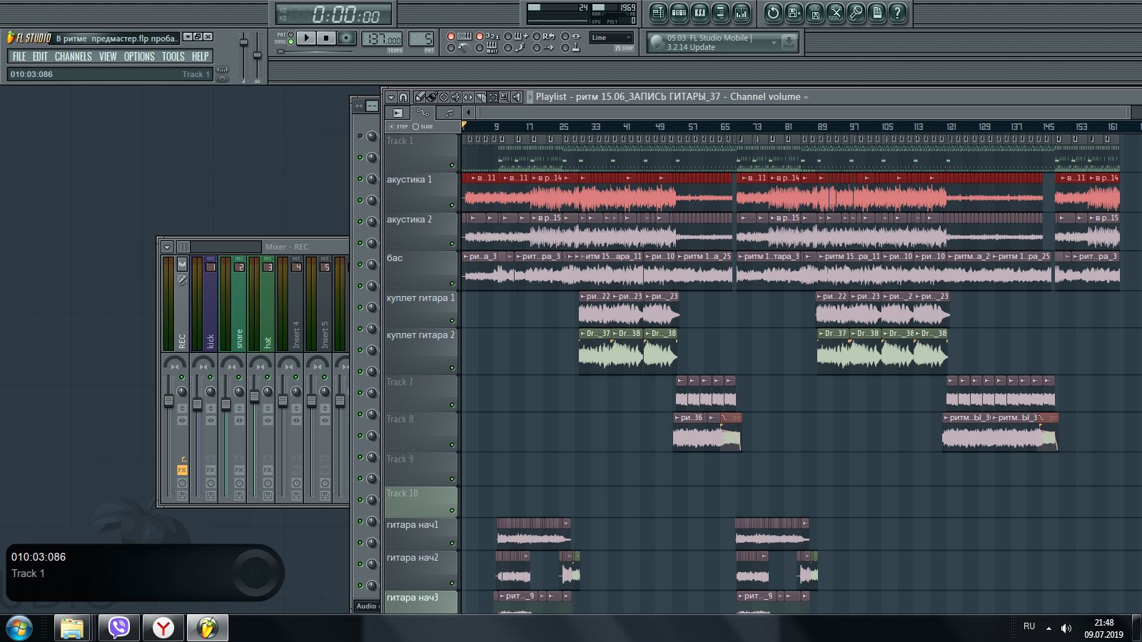 Как отправить дорожку состоящую из разных кусочков в один канал микшера на FL studio 11
