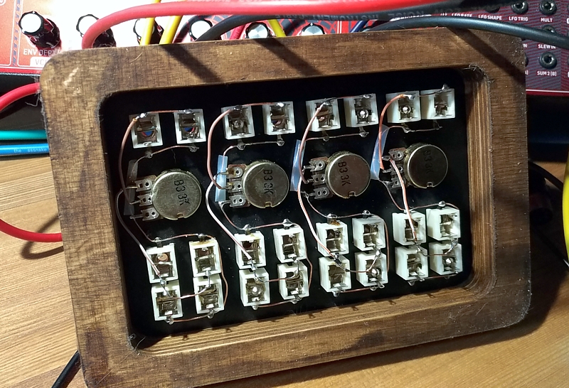 На поверхности лежала идея смастерить выносной пассивный блочок для моих полумодульников, коих достаточно набралось. На пробу. Хотел на 8 каналов сделать, передумал, остановился на 2х4, чтобы в разных местах размещать можно было. Впрочем, наваять таковых еще с дюжину при необходимости никакого труда не составит.